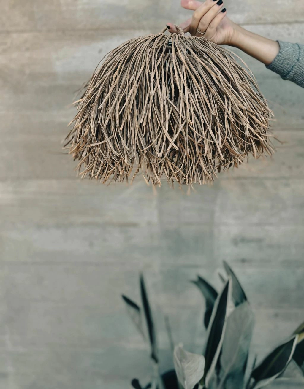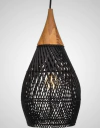 Las lámparas Asti están tejidas a mano en hilo de papel kraft (tostado o negro), con una estructura interna flexible que permite plegarlas fácilmente. Su diseño con aros metálicos y cadenas crea una pieza delicada, liviana y muy decorativa.