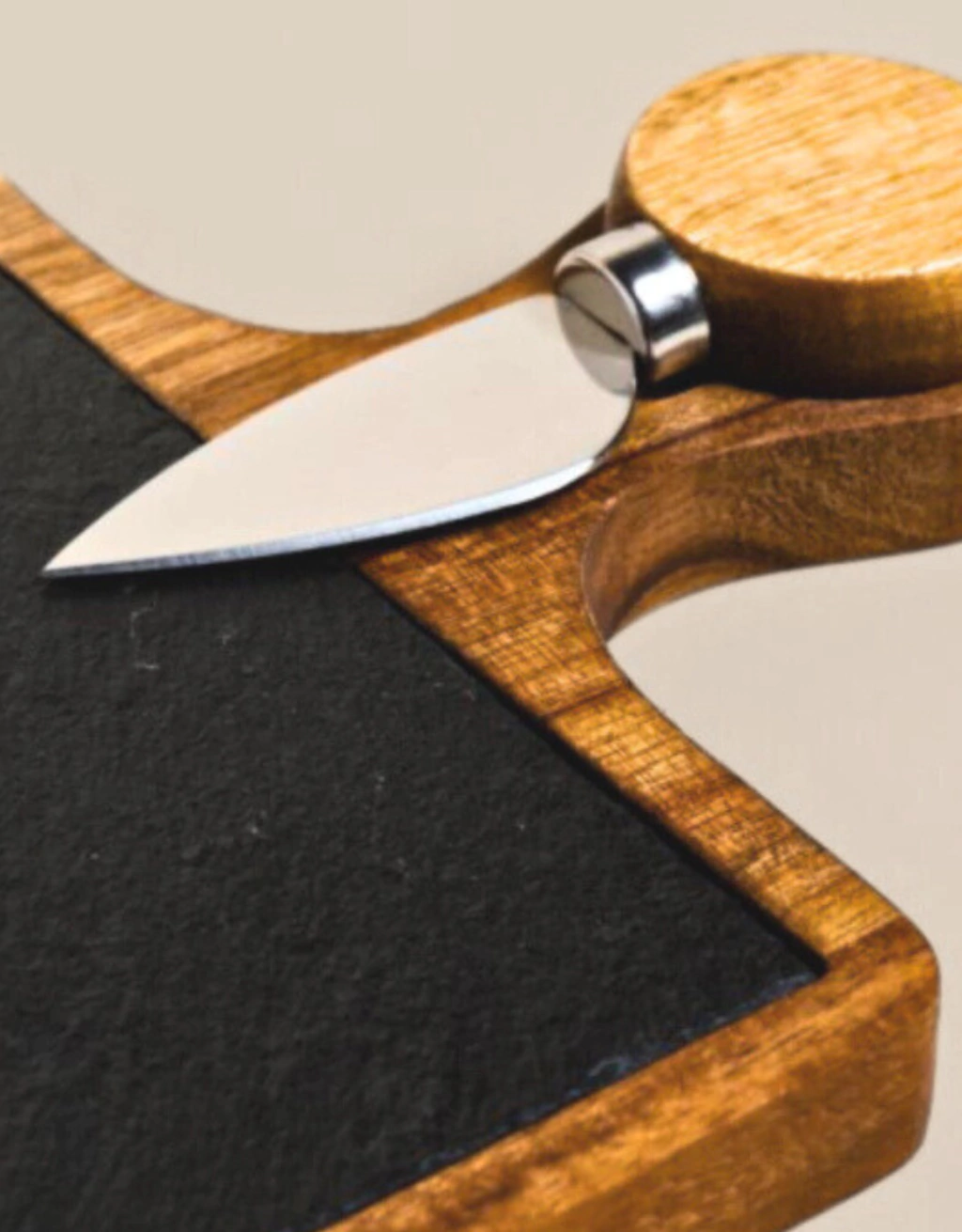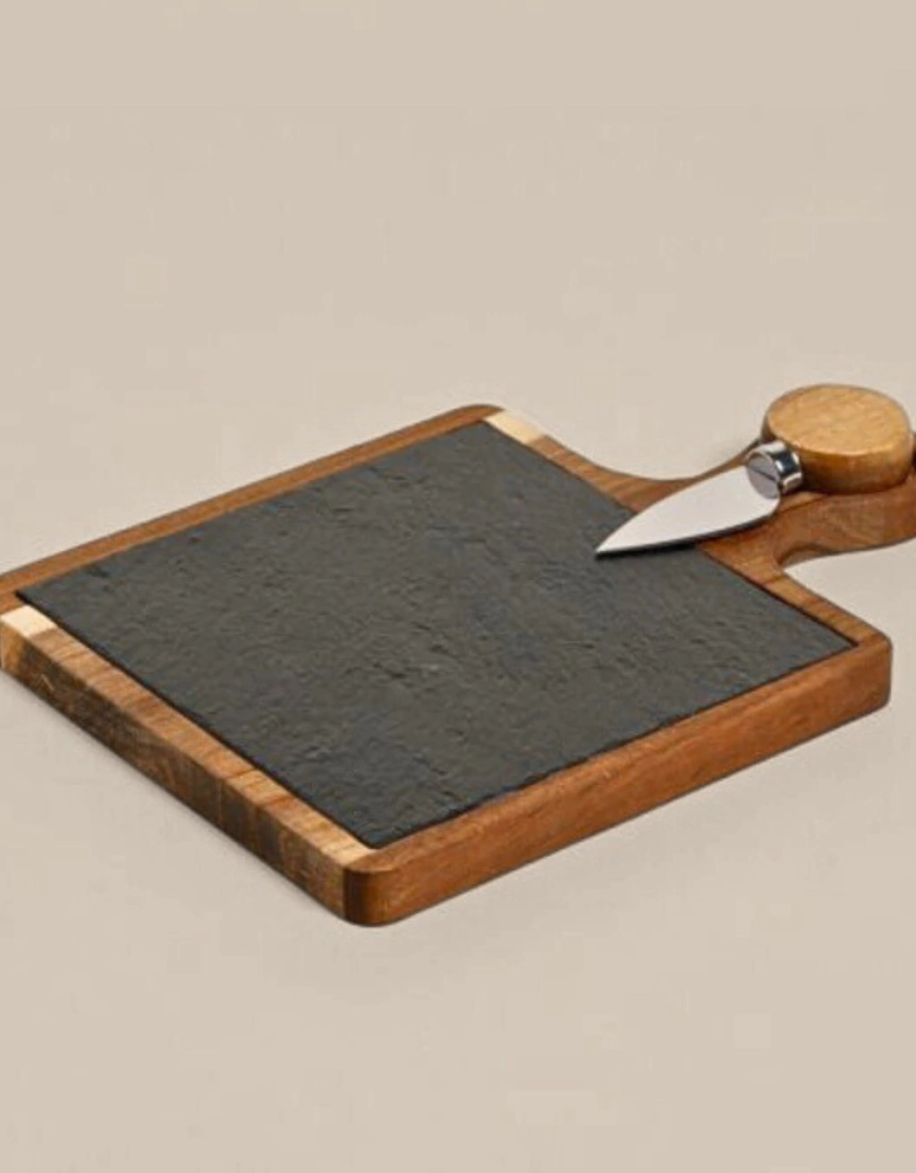 Tabla cuadrada de Acacia y Laja con cuchillo para queso – Diseño natural y funcionalidad para tu mesa