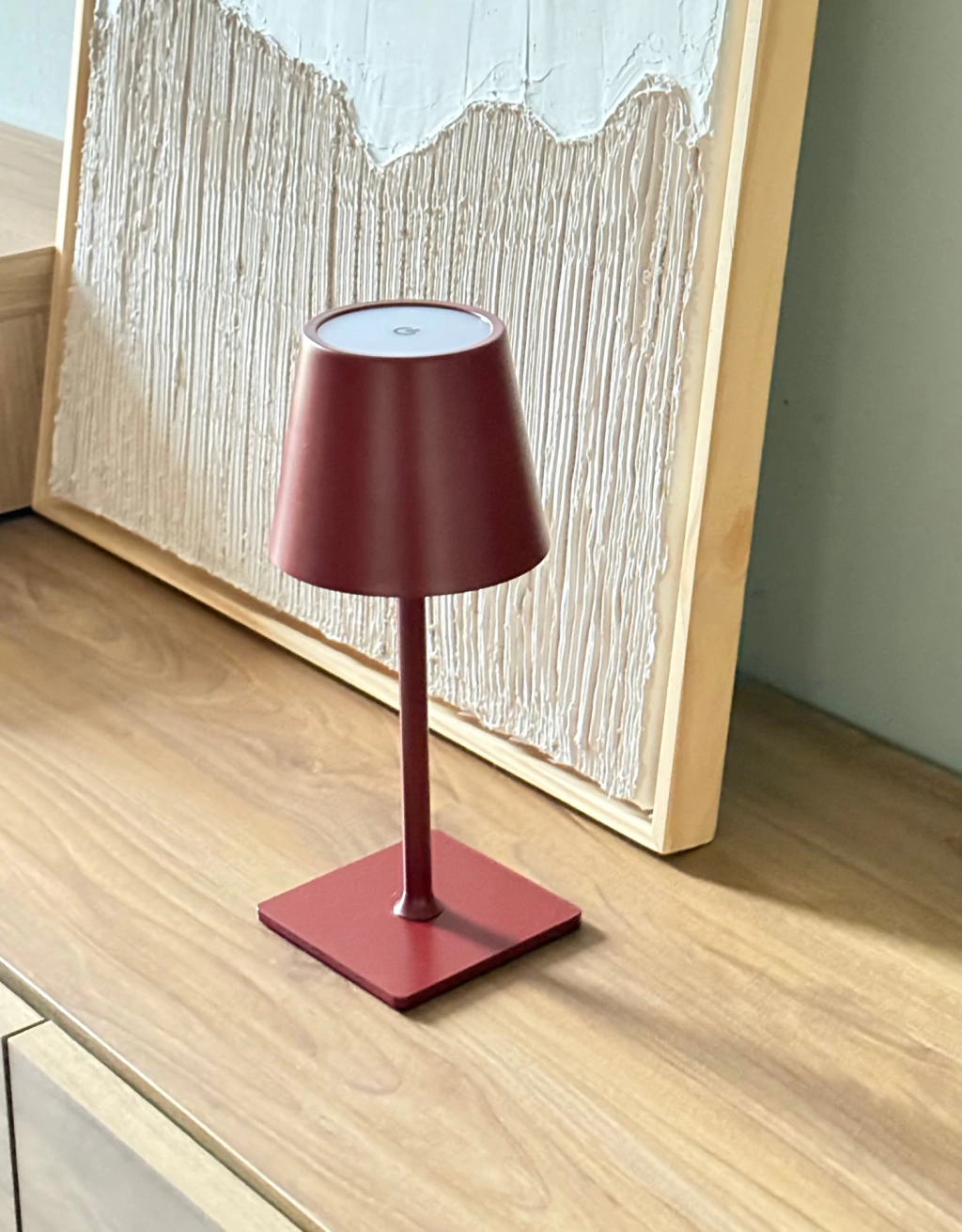 La Arno combina diseño moderno con practicidad. Su forma cónica y base metálica cuadrada le dan presencia sin ocupar demasiado espacio. Es ideal para mesas de noche, escritorios o rincones que pedían un toque de luz y estilo… pero no tenían un enchufe cerca.