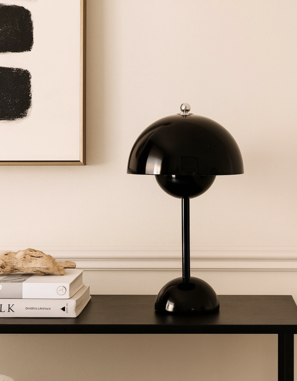 Esta lámpara es ideal para esos rincones que pedían luz, pero también un toque de diseño. Inalámbrica, liviana y con batería recargable, te acompaña donde la necesites: desde una cena íntima hasta una noche de lectura en el sillón.