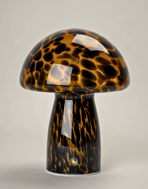 Un objeto de diseño que ilumina y decora al mismo tiempo. Esta lámpara de vidrio con efecto animal print combina lo artesanal con lo moderno, creando un punto de luz cálido y súper estético en cualquier ambiente.